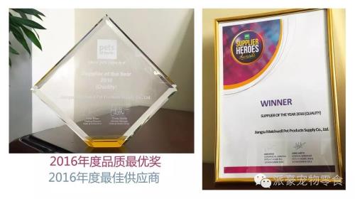 歐洲傳來派豪喜訊:派豪寵物零食憑借優(yōu)秀的品質(zhì)和爆棚的人氣,從眾多的寵物食品中脫穎而出,榮獲英國寵物連鎖超市巨頭PETS AT HOME頒發(fā)的2016年度品質(zhì)最優(yōu)獎,同時益和公司獲得2016年度最佳供應(yīng)商稱號。